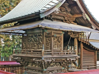 「天の岩戸」「源頼政御殿」「三韓征統」「牡丹に獅子」「波に鯉」など拝殿の三面に施されており、市の指定文化財になっています。